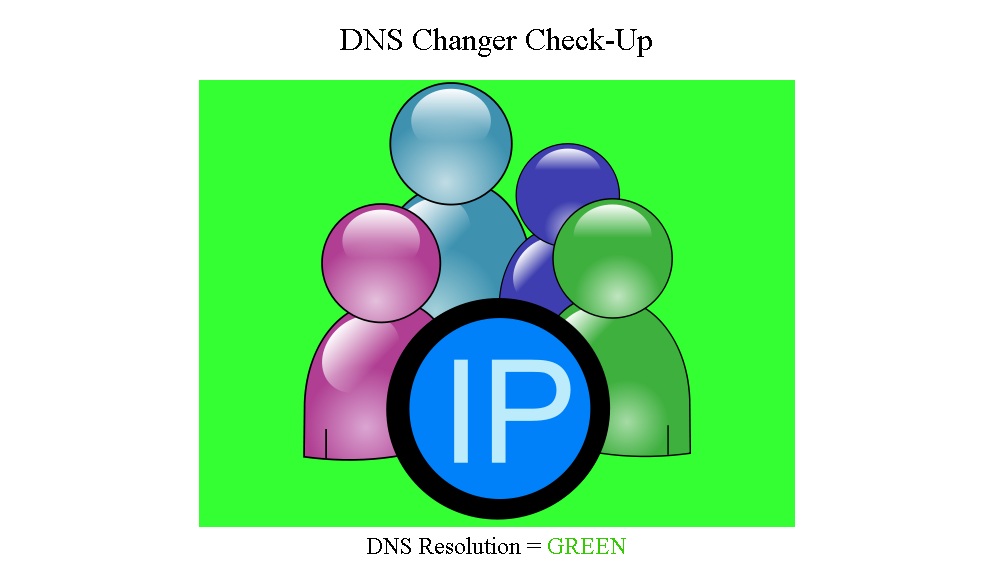 4. Jika komputer Anda tidak terinfeksi, di monitor akan muncul logo besar berwarna hijau dengan pesan, "DNS Resolution = GREEN". Maka, Anda tidak perlu melakukan apa pun.